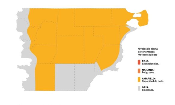 El aviso comprende Cushamen, Futaleufú, Languiñeo, Tehuelches, Río Senguer, Gastre, Paso de Indios, Telsen, Mártires, Biedma, la denominada meseta de Rawson, Florentino Ameghino y Gaiman, donde podrían registrarse lluvias intensas en cortos períodos con actividad eléctrica.