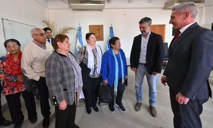 El encuentro contó con la presencia de los ministros de Gobierno, Cristian Ayala; de Economía, Oscar Antonena, el subsecretario de Obras Municipales, Sergio Ramón, la presidenta del Centro de Jubilados, Esmeralda Guzmán, la presidenta del Consejo Municipal de Adultos Mayores y titular del Centro de Jubilados y Pensionados Trelew, Mirta Flores, y miembros de la comisión directiva.