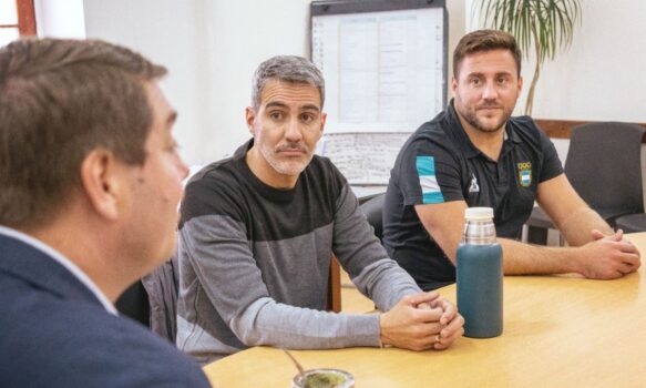 Este viernes, el intendente de Rawson, Damián Biss, se reunió con Leandro Mazzini, referente del Club Náutico Sportivo Avellaneda de Rosario, y Tomás Echenique, jugador de la Selección Argentina y actual integrante del club Palmas de España, en consonancia con la visita que ambos realizan a la ciudad para impulsar actividades formativas y deportivas.