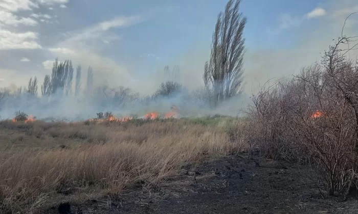 Según indicó el jefe de bomberos de la localidad, oficial principal Raúl Diez, en comunicación con Radio Chubut, la condición climática y el material combustible que se encontraba en la zona, hizo que las llamas tomaran grandes dimensiones.