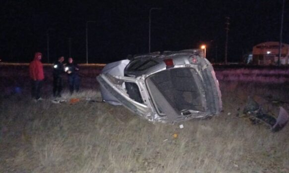 Según los primeros datos el vehículo pasó la rotonda a gran velocidad, impactó, salió despedido por el aire, dio varios trompos y finalmente terminó volcado.