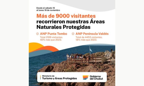 Desde el Ministerio de Turismo y Áreas Protegidas se informó que entre el sábado 16 y el lunes 18 de noviembre inclusive, ingresaron un total de 9.118 personas a las Áreas Naturales protegidas del territorio chubutense, representado este número un 40% más de visitantes en comparación a los datos del mismo periodo del 2023.