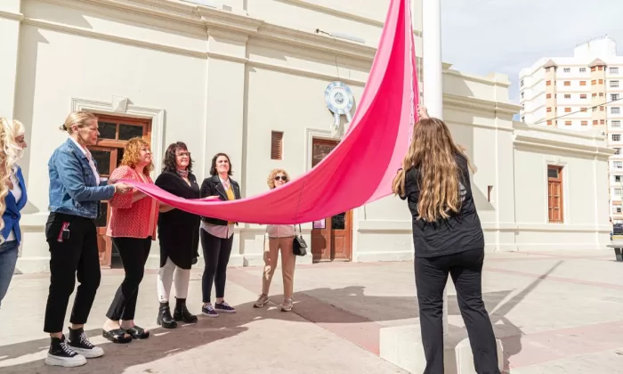 En este mismo orden, mencionó que “Comodoro también se pinta de rosa, ya que estas acciones fueron declaradas de interés municipal por el Concejo Deliberante. Agradezco a los secretarios presentes en la organización del folleto que tiene información, la iluminación, izamiento de la bandera; a todas las autoridades de APAEC, a las personas que organizan los eventos en rosa, instituciones que no están presentes pero que están trabajando para que esto se concrete. Izar esta bandera es alzar una esperanza de vida para aquellas que puedan sensibilizarse a través de este color que marca la historia”.