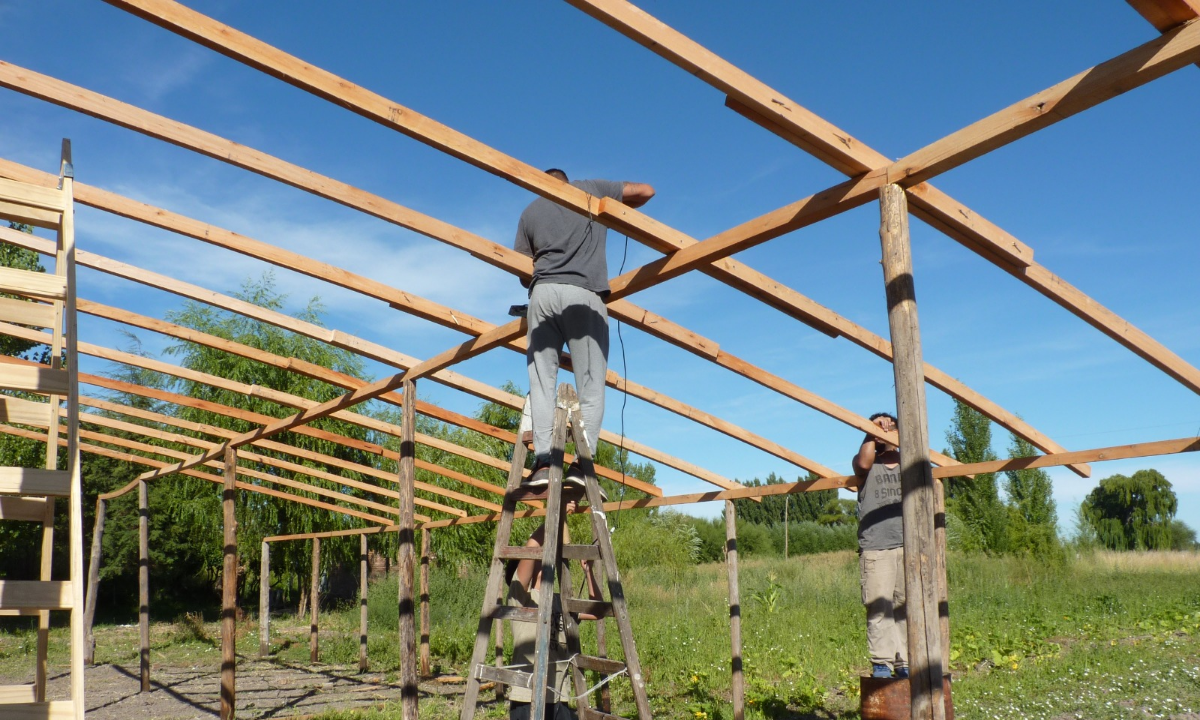 En el marco del Programa de Agricultura Familiar (PROAF) Chubut que impulsa el Ministerio de Agricultura, Ganadería, Industria y Comercio, la Cooperativa de Trabajo y Consumo El Patagón Ltda. de Gaiman avanza con la construcción del invernáculo de 12×30 mts, destinado a la producción de plantines de tomates y morrones bajo cubierta.