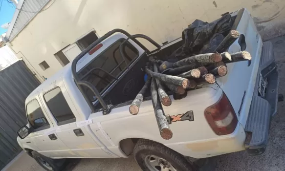 En el lugar se procedió al secuestro de la camioneta Ford Ranger que contenía 15 trozos de cables, chalecos refractarios, linternas y cascos.