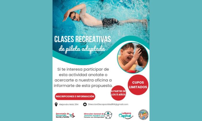 La Secretaría de Desarrollo Social y Familia de la Municipalidad de Rawson, a través de la Dirección de Atención Integral a la Persona con Discapacidad, abrió la inscripción para el dictado de clases recreativas de pileta adaptada en Playa Unión durante los meses de febrero y marzo.