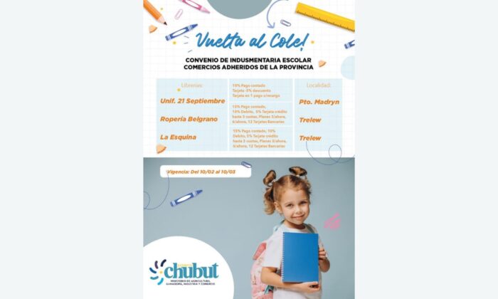 Agregó que, en las ciudades de Trelew y Puerto Madryn, también se llegó a acuerdos para la compra de guardapolvos e indumentaria escolar.