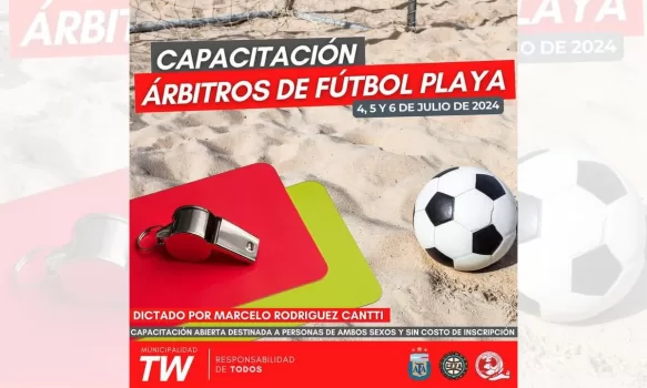 “Es un curso que dictará Marcelo Rodríguez Cannti, instructor de árbitros oficiales y encargado del departamento arbitral de fútbol playa de la AFA y el Consejo Federal de Fútbol”, explicó Florencia Tejero, responsable de la Coordinación de Deportes.