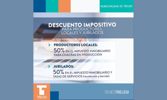 La Municipalidad de Trelew a través de la Coordinación de Rentas continúa ofreciendo una serie de descuentos en los impuestos municipales para contribuyentes al día, jubilados, pensionados y productores locales.