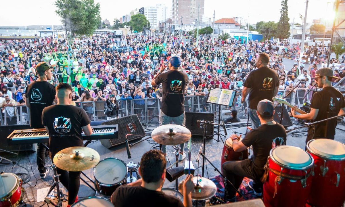 La banda cordobesa, fue la encargada de abrir la temporada de espectáculos musicales para que turistas y residentes puedan disfrutar del primer show gratuito organizado por la Municipalidad de Puerto Madryn, colmando todo el sector aledaño al Playón Recreativo.