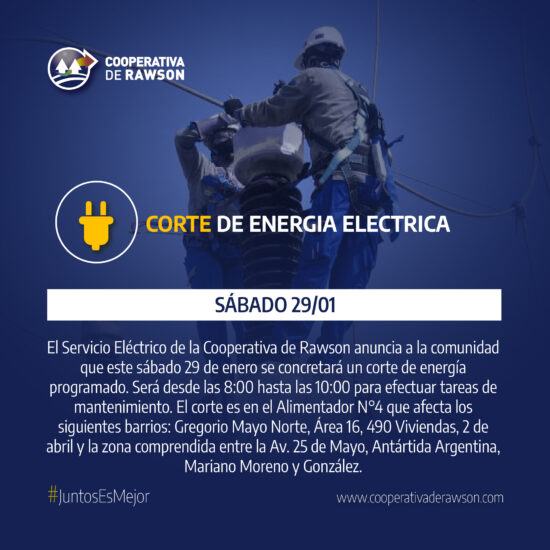 La Cooperativa de servicios públicos capitalina a través del Servicio Eléctrico anunció a la comunidad que este sábado 29 de enero se concretará un corte de energía programado.