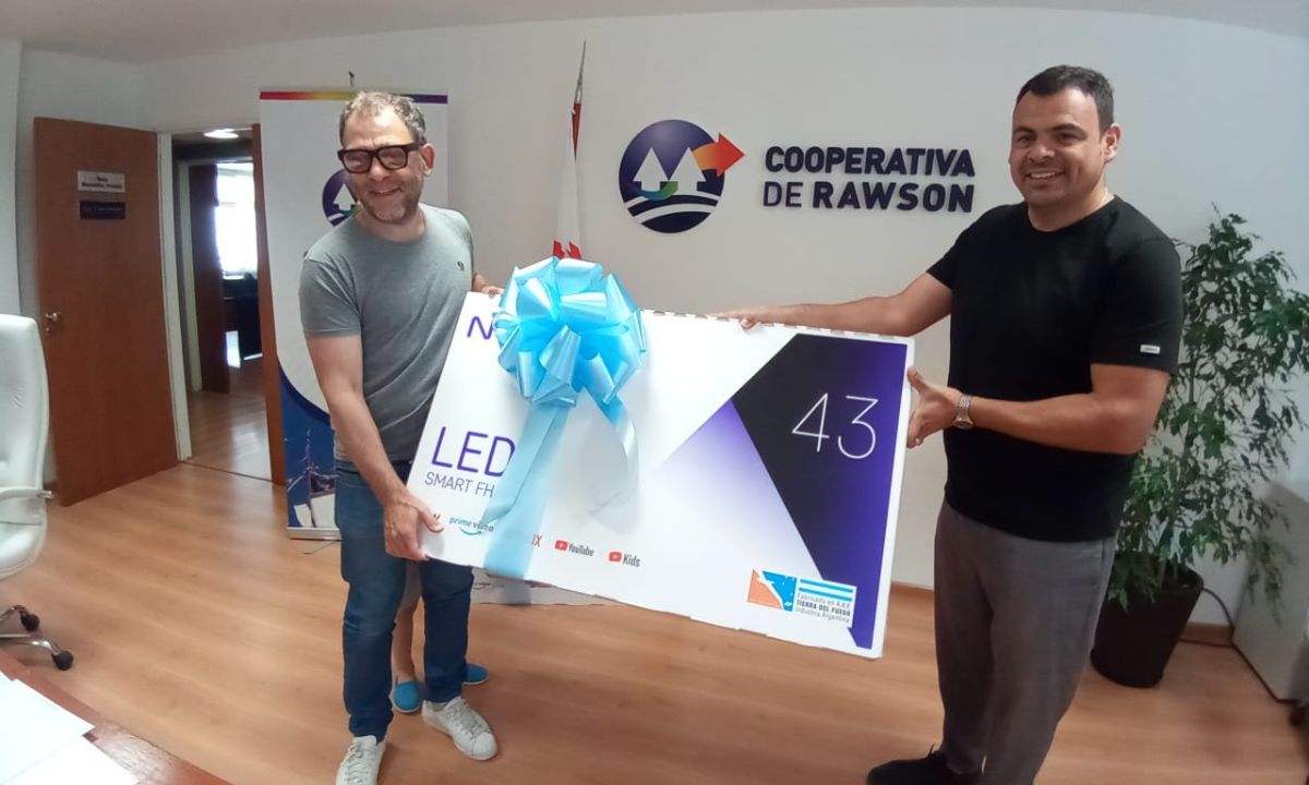 Este lunes por la mañana, el presidente de la Cooperativa de Servicios Públicos de Rawson, Alejandro Yaniez, hizo entrega formal de dos televisores led 43” a los beneficiarios del sorteo “La Cooperativa es Mundial”.