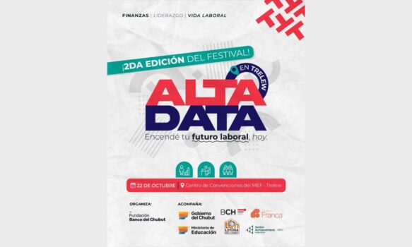 Con el acompañamiento del Gobierno Provincial, encabezado por Ignacio “Nacho” Torres, la Fundación Banco del Chubut llevará adelante la segunda edición del Festival ALTA DATA, destinado a jóvenes de 16 a 23 años, que se realizará el miércoles 22 de octubre de 14 a 18 horas en el Centro de Convenciones del Museo Egidio Feruglio (MEF), en Trelew.