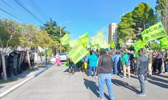 Trabajadores de la UOCRA se concentraron frente al municipio de Rawson para exigir el pago de salarios atrasados, situación que atribuyen a la demora en la llegada de fondos nacionales destinados a la obra que se estaba ejecutado en el sector conocido como Chacra 8.