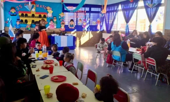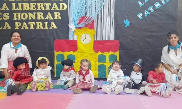 De este modo, los 8 Centros de Desarrollo Infantil se vistieron de celeste y blanco. Todos los niños que asisten diariamente concurrieron caracterizados de época y se realizaron bailes típicos.