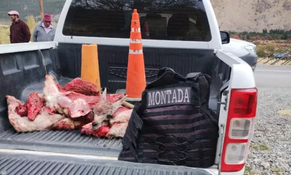 Allí personal de la División de Seguridad Rural de Trevelin, procedió a controlar un vehículo Toyota Hilux, donde se observa en la caja 5 canes, tapados con una lona azul, y en su interior seis ocupantes quienes aluden que transportan carne de guanaco, careciendo del permiso de caza.