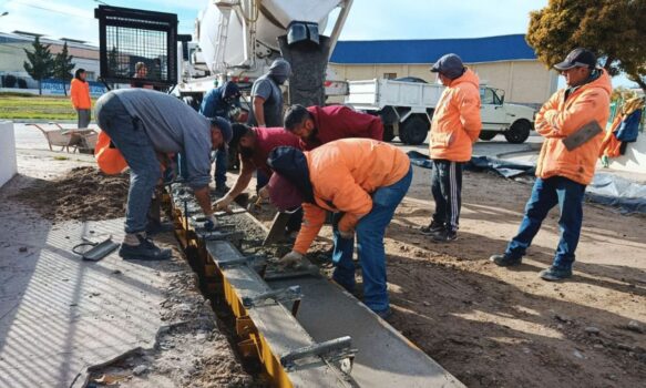 Figueroa precisó que ya se realizaron el movimiento de suelo y la compactación correspondiente la semana pasada. Aunque el avance de la obra se vio afectado por las intensas lluvias, los trabajos fueron retomados con el moldeado y la colocación de hormigón.