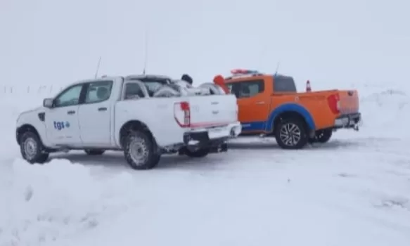 Para el operativo de rescate, se trasladó maquinaria inclusive desde Trelew, para despejar el trayecto que se encuentra con dos metros de nieve acumulada.