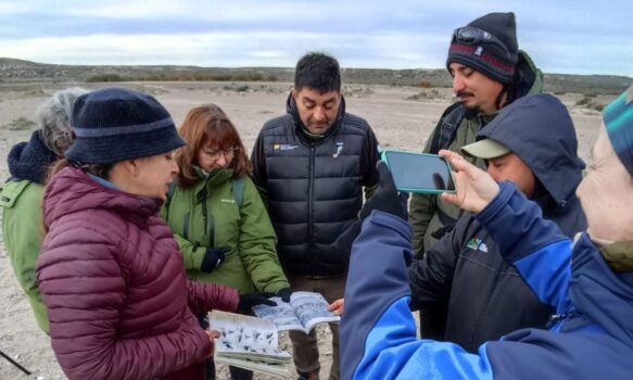 En el caso de Península Valdés se realizaron dos instancias: el 21 y 22 de mayo tuvo lugar una capacitación y monitoreo de ensamble de aves playeras a cargo de Luciana Musmeci en tres localidades del área protegida (Playa Fracasso, Playas Blancas y Playa Colombo), con participación de guardafaunas y personal de la Dirección de Fauna y Flora Silvestre de la provincia.