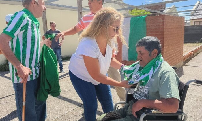 La secretaria de Desarrollo Social y Familia de la Municipalidad de Rawson, Silvana Cendra, y el presidente del Club Atlético Germinal, Pedro Bravo González, entregaron merchandising oficial del club al abuelo Alfredo Albino Fernández que además “cuenta con una importante historia en cuanto acompañamiento al desarrollo de Germinal”, destacó la funcionaria municipal.