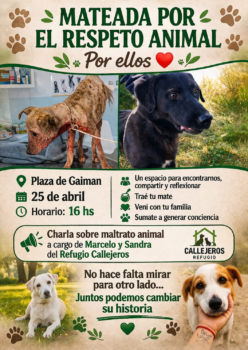 La comunidad de Gaiman se prepara para participar de la Mateada por el Respeto Animal, una propuesta abierta orientada a generar un espacio de encuentro, reflexión y concientización sobre el cuidado y protección animal.