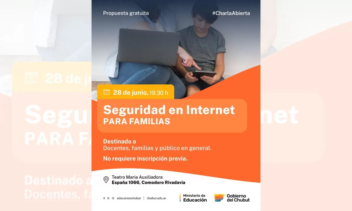 Seguridad en Internet: Provincia realiza en Comodoro Rivadavia una charla especialmente destinada a las familias