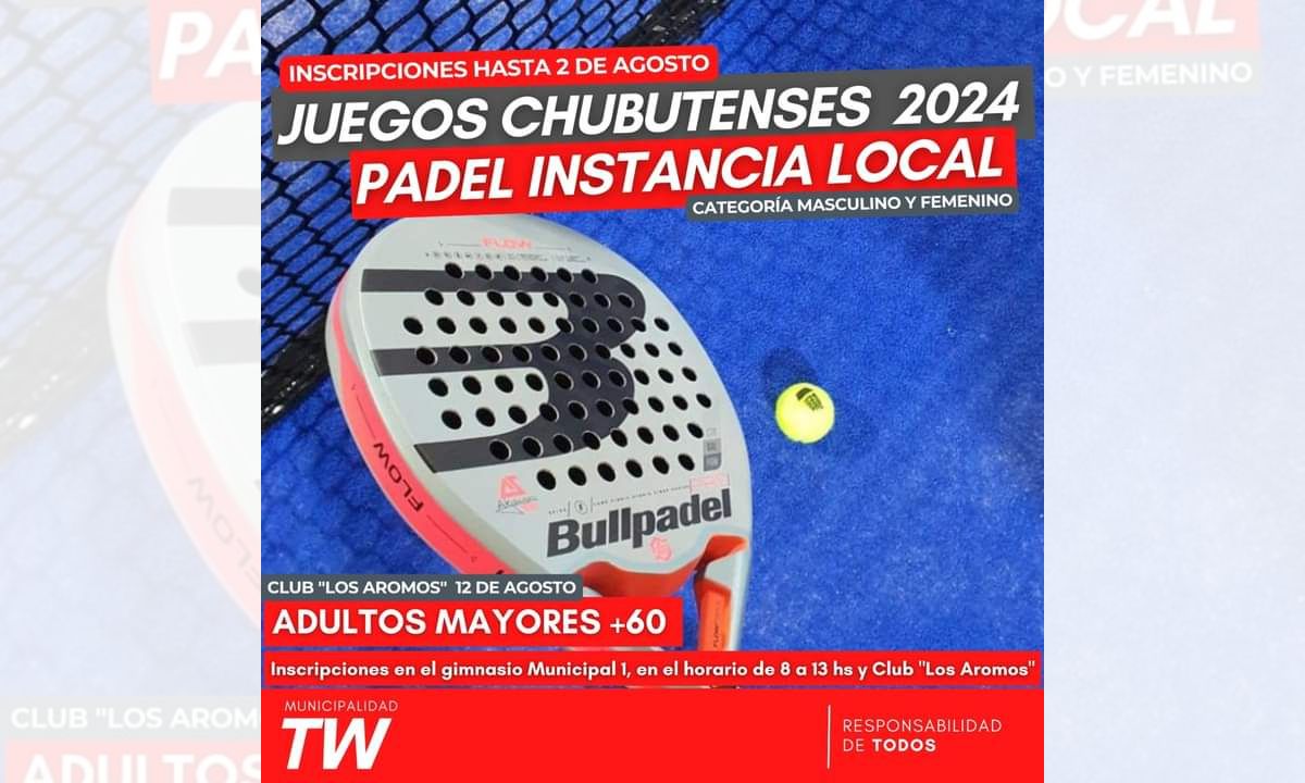 Trelew inscribe para la instancia local de los Juegos Chubutenses de pádel para +60
