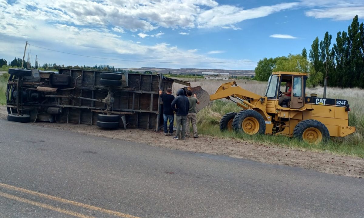 Se trató de un vuelco que protagonizó este miércoles por la mañana un camión que transportaba ganado desde el valle hacia la localidad de Trevelin.