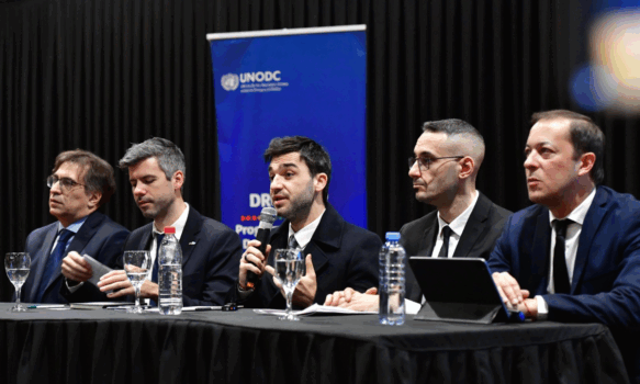 Durante la actividad, enmarcada en el Día Internacional de la Lucha contra el Uso Indebido y el Tráfico Ilícito de Drogas, el mandatario compartió panel con el coordinador de Proyectos sobre Drogas Sintéticas de la UNODC para la Región Andina y el Cono Sur, Luis Ignacio García Sigman; el especialista en Criminalidad Transnacional y coordinador de la Oficina Internacional de Asuntos Antinarcóticos y Aplicación de la Ley (INL) de la Embajada de los Estados Unidos, Jérémie Swinnen; el presidente del STJ, Javier Raidan; y el procurador adjunto de Chubut, Matías Froment, quien ofició como moderador.