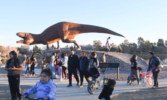 “Además de fomentar el encuentro y el esparcimiento, buscamos que nuestros espacios públicos tengan identidad, que cuenten historias y reflejen el enorme patrimonio natural y paleontológico que tiene nuestra provincia”, subrayó Merino.